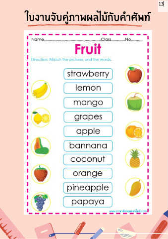 ใบงานจับคูภาพผลไมกับคําศัพท